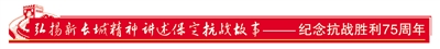 今年是中国人民抗日战争暨世界反法西斯战争胜利75周年。抗战期间,中华儿女以血肉之躯筑起一道拯救民族危亡、捍卫民族尊严的钢铁长城,打破了日本侵略者不可战胜的神话,用生命和鲜血谱写了中华民族历史上抵御外侮的伟大篇章。