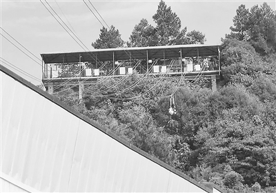 ▲其身后较远处还有 一人也悬停在索道上。