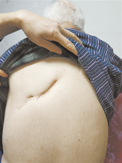 王绍明老人后背上的旧伤。