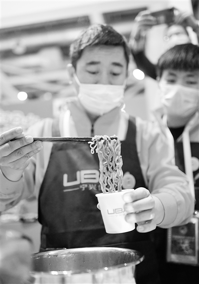 在韩国三养食品株式会社展台,一场别开生面的挑战赛正在进行:谁能在现场吃下一整份3倍辣度的火鸡面,就能获得展商准备的小礼品。韩国三养食品株式会社相关负责人介绍说,该公司首次以“火鸡面专题馆”的形式与广大客商见面,在现场制作多种口味的火鸡面供客商品尝,以提升现场观展的体验感,活跃气氛。
