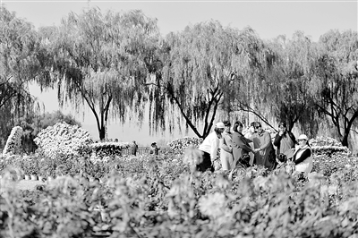 11月8日,游客在沙河市白塔镇栾卸村菊花园游览。近日,河北省沙河市白塔镇栾卸村菊花园开门迎客,吸引众多游客前来观赏。近年来,栾卸村引进优质菊花品种开展培育种植,打造拥有30000多盆、500多个品种的菊花园,助力美丽乡村建设和乡村旅游发展。