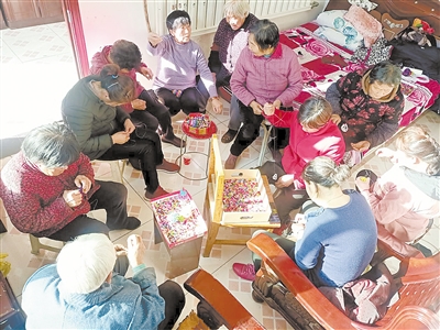 顺平县神南镇杨家台妇女手工坊是杨家台妇女联合会下属的一个妇女小组,这不,他们要带着村里老人度过一个不一样的冬天。走进之前的贫困户齐彦会(现为杨家台妇女联合会副会长兼妇女手工小组组长)家中,传来的是一串专业术语。“这是不是到六珠圈了?”“对,你那应该是左过一,右穿四。”“我的还有一个五珠圈就可以完工了。”“你把线锁死,等会我帮你接线。”这正是齐彦会带领一帮老太太做串珠手工的场景。