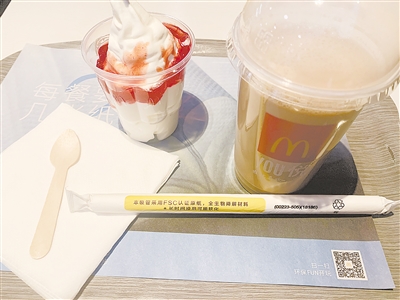 麦当劳星巴克:纸吸管、直饮杯盖、木制刀叉和勺子