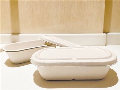 某酒店为食客提供的麦秸秆材质打包餐盒。