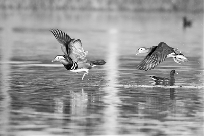 冬季的北湖,两只鸳鸯为争“媳妇”打了起来。 吴红德 摄