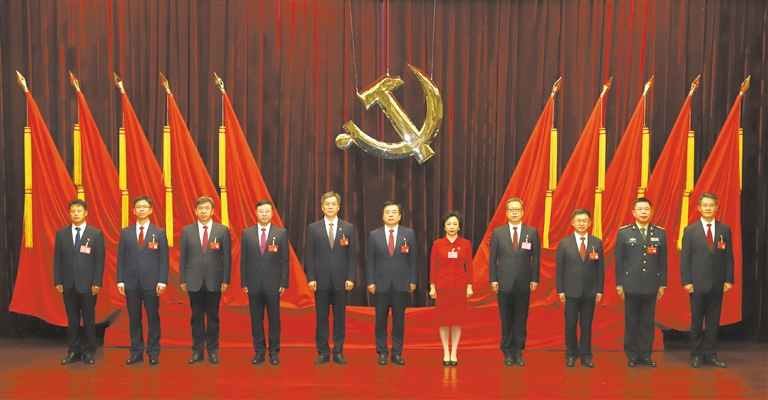 新当选的常委合影:党晓龙(左六)、闫继红(右五)、商黎兵(左五)、曹海波(右四)、赵韶峰(左四)、祁海东(右三)、张贵宝(左三)、汪泽涛(右二)、薛冰山(左二)、侯晓平(右一)、刘靖(左一)。