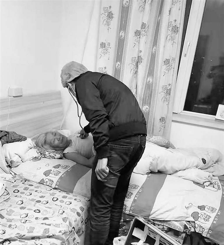 医生赶到家中为老人诊断治疗。