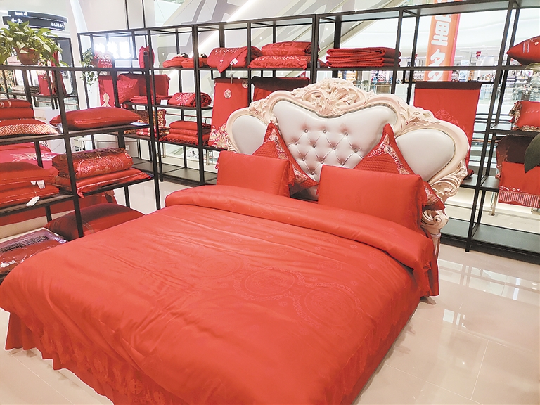 本报讯(记者邱恩宇)俗话说“金九银十”,每年的九月和十月也是新人喜结连理扎堆的时节。与之相对应的,与“彩礼”“嫁妆”挂钩的商品也自然进入热卖期。不过,如今结婚需要准备的可不只有彩电、冰箱、洗衣机、录音机这“四大件”,高端床品、智能家电、新装首饰、酒水糖果等都需要考虑挑选。商品档次的升级变迁,体现着如今人们消费能力的升级。