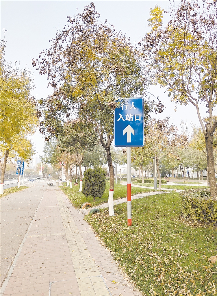 随后记者来到保定东站,找到了两处行人出入口。蓝底白字的标识“高铁站行人出入口”和“行人入站口”立在路边明显位置,并且在广场北侧,进入行人出入口的路面上还有一条绿颜色的通道。“通道刚刚建好一两个月,你看这砖面都是新铺的,就是为了旅客进出方便。”保定东站站前委负责人说,近期东站的提升改造一直在进行,各种灯的维护和亮度提升和现在看到的行人出入口,之后还会陆续完善各种配套设施,服务更加人性化。