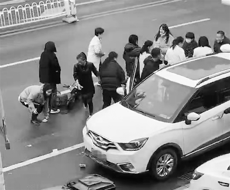 众人捡钱现场,有的主动归还男子。