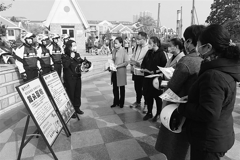 本报讯(记者耿静 通讯员白秋媚)为进一步加强社区居民的文明出行及安全行车意识,预防和减少交通事故的发生,近日,交警支队走进东方家园社区开展文明交通平安出行宣传活动,特别是对驾乘电动自行车要按规定佩戴安全头盔进行宣讲。