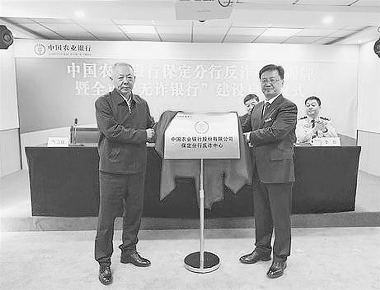 农行保定分行举办反诈中心揭牌暨全市“无诈银行”建设启动仪式。
