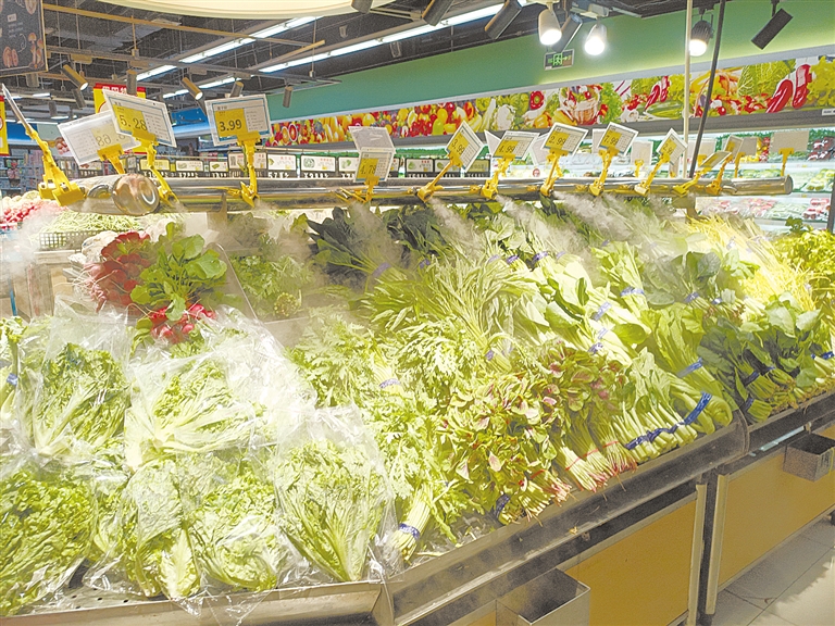 4日上午,记者走访市区部分超市,货架上各类蔬菜供应充足。“这几天菜价降下来了,比如油麦菜现在每斤3.99元,上个月涨到过10多元,还有大白菜,现在每斤1.5元,之前贵的时候3元一斤。不少之前价格涨势惊人的蔬菜,现在价格都回落了至少一半。”市民刘女士告诉记者,因为离家近,她几乎每天都来七一路上的一家超市买菜,对于菜价的变化有着直观感受。