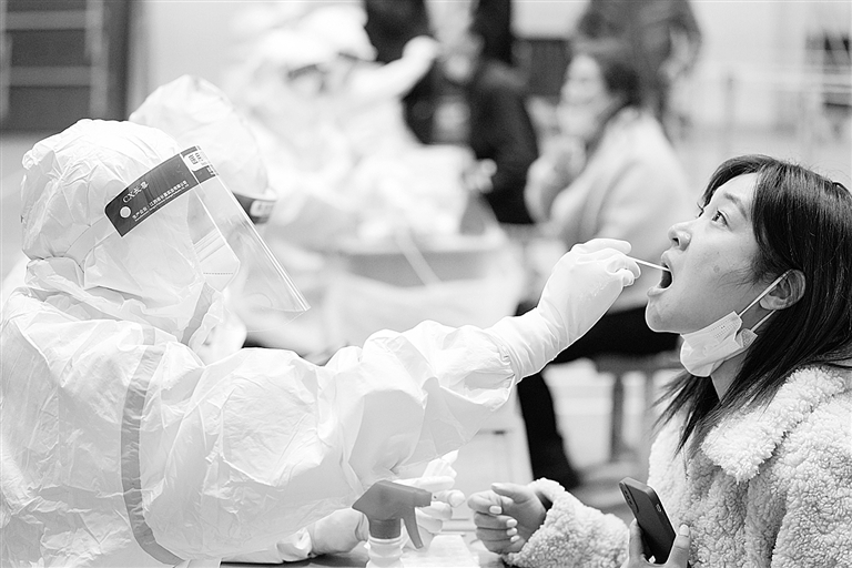 11月3日,在哈尔滨市香坊区一核酸检测点,市民在进行核酸检测。 为防止疫情进一步传播和扩散,哈尔滨市加紧全民核酸检测。截至目前,哈尔滨市部分地区已启动第三轮核酸检测。 新华社记者 王建威 摄