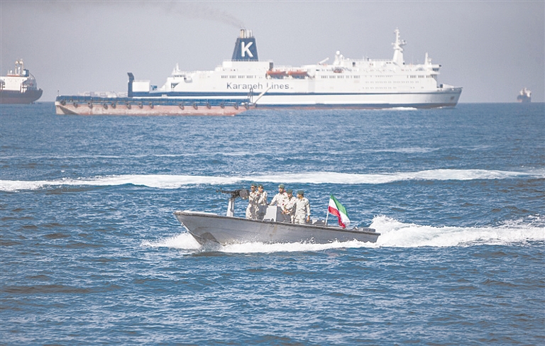 2019年4月30日伊朗士兵在霍尔木兹海峡巡逻。