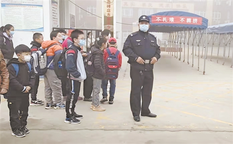 11月2日中午11时50分许,正值下班车流高峰,高碑店市公安局东盛派出所辅警郑勇站在十字路口熙熙攘攘的车流中,巡视着昌盛路小学放学后周边的环境,疏导着拥堵车辆。