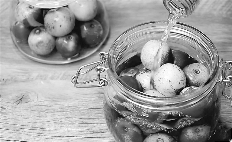 诸事俱备。把酒倒在大碗里,把枣一个个在酒里仔细涮过,蘸满酒,轻轻地放在容器里,放满之后密封好,放在阴凉干燥的地方,过上一个月左右就能吃了,能一直保存到过年时候,当作招待亲朋的上品。醉枣开罐后就要尽快吃掉,放上几天就会抽巴发酸,因为这特点,我们乡里广泛流传着关于醉枣的小笑话。人们把常年酒气熏天的酗酒之人称为醉枣,面对大家的屡屡劝诫,那些人也有自己的一番理论:“我就是个醉枣,要是让酒泡着什么事没有,缺了酒就坏了,完了,所以得喝!”一番歪理惹人发笑。