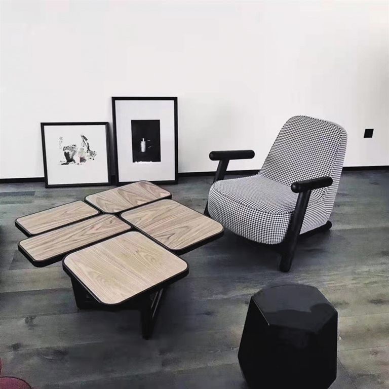 黑、白、灰,永远的流行色,几何图形加流线椅子,错落有致,图案选配可谓有声有色。单调的色彩,搭配起来反而不显得单调了。