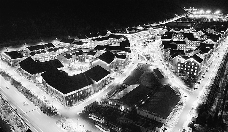 张家口冬奥村首次“点亮” 这是11月23日拍摄的张家口冬奥村夜景(无人机照片)。当日,2022年北京冬奥会张家口冬奥村(冬残奥村)开展了首场常规用电负荷测试暨亮灯仪式。张家口冬奥村(冬残奥村)位于崇礼冬奥核心区的中心位置,地上建筑面积约13.5万平方米,地下面积约10.3万平方米。