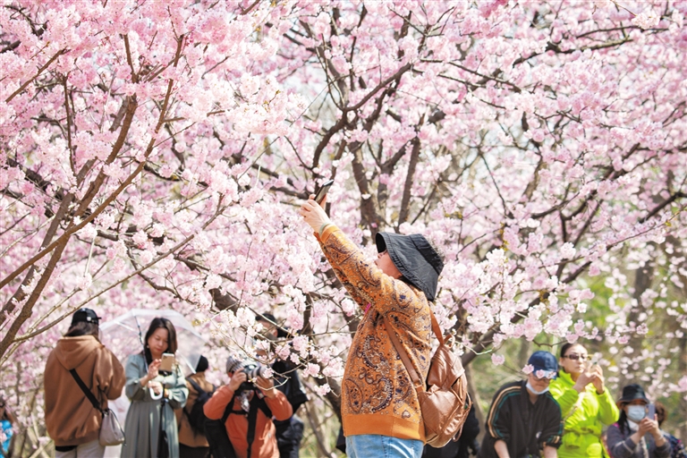 拥抱春天 3月10日,游人在南京中山植物园赏樱拍照。春暖花开,人们纷纷走出家门,踏青赏花,拥抱春天。 新华社发(苏阳 摄)