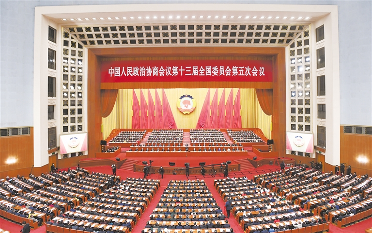 3月10日,中国人民政治协商会议第十三届全国委员会第五次会议在北京人民大会堂闭幕。 新华社记者 翟健岚 摄