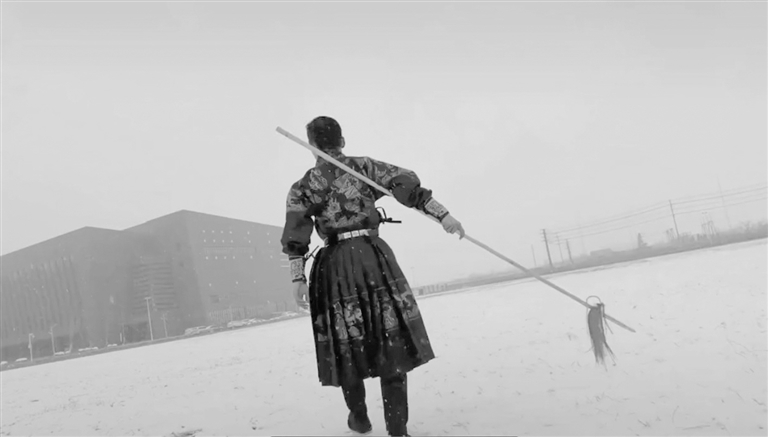 你曾有过豪气万丈的“江湖梦”吗?你曾有过仗剑走天涯的豪情吗?皑皑白雪下,一个古装黑衣少年演练枪术,画面很精彩。近日,河北大学一学生自拍的武术视频上传到网络后,浏览量近10万,视频中的武术动作看起来十分专业,网友看过后直呼精彩,称其堪比一部武侠片。