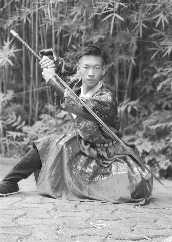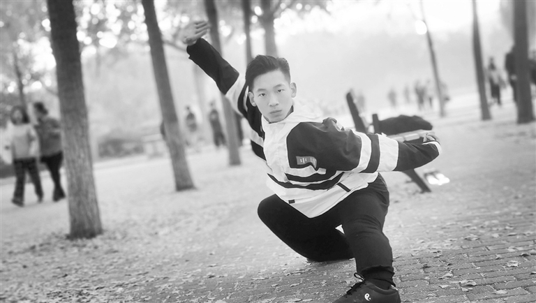 视频中的黑衣少年名为张朝伟,是河北大学中文系汉语言文学专业的大四学生,土生土长的保定顺平人。按寻常人看,学中文的男生大多文静内敛,但有着8块腹肌的张朝伟却有着与平常人不一样的爱好——武术。说起跟武术结缘,20岁的张朝伟脸上闪烁着熠熠光辉。“我记得小时候有个梦。梦里,我成了大侠,像武侠电视剧里演的那样,一脚蹬在树上,自己就飞了起来。”从小,家里电视常常放着《射雕英雄传》《神雕侠侣》等武侠剧,张朝伟天天看,看得入了迷,也会跟着电视上的拳法模仿几下,打小在心里就种下了“武侠梦”。