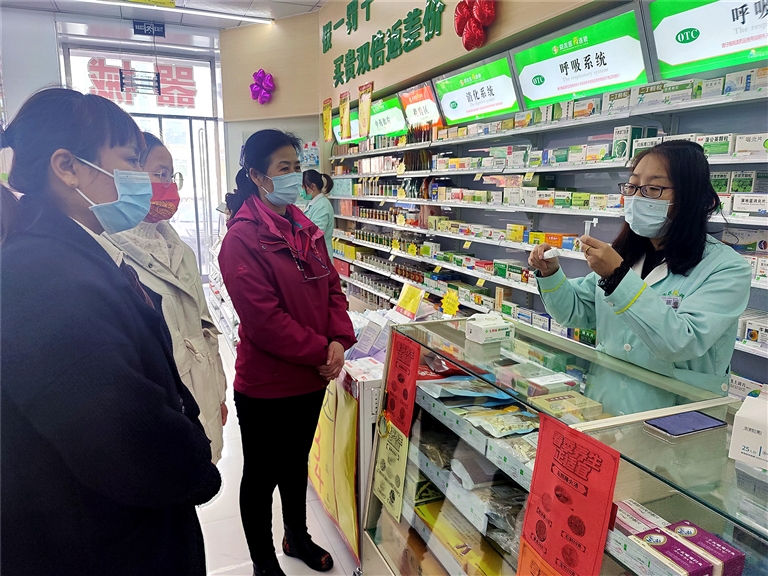 益友药店负责人向前来购买的消费者进行仔细讲解。
