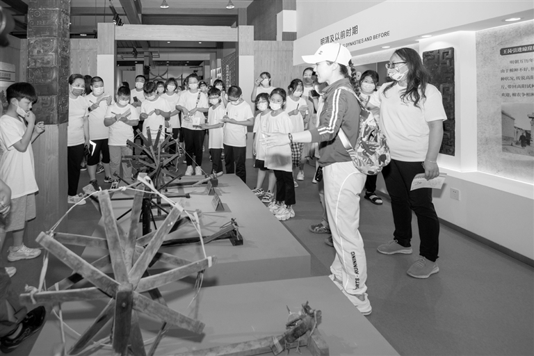 同学们参观纺织博物馆老式纺车。 卢建永 摄