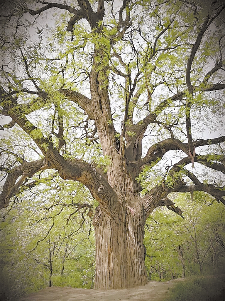 我家就住在离老槐树不远的地方。从我记事起,老槐树那高大挺拔的形象就时常出现在我的视野中。粗大的树干,三个大人手拉手合抱还围不拢的胸径。大树南侧一丈以下被雷劈了,好像一门洞开,树腹中空直达树杈。幼时的我身体娇小灵气,能顺着树洞爬至树顶。