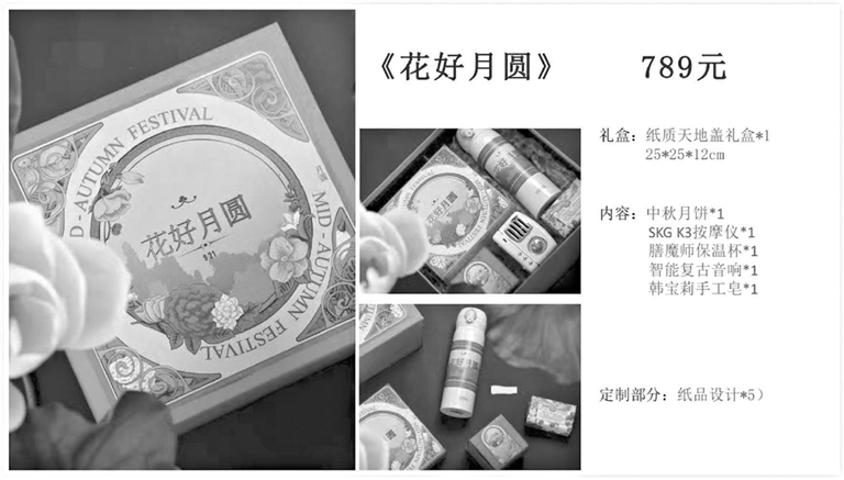 记者调查发现,类似配置还有很多。一个商家发来的“花好月圆”中秋礼盒信息显示,售价高达789元。不过,其中仅有一块小小的月饼,被放在礼盒角落里。其余空间则被按摩仪、保温杯、复古音响和手工皂占据。商家称,月饼口味随机,如果需要,可以花10元再加一块。