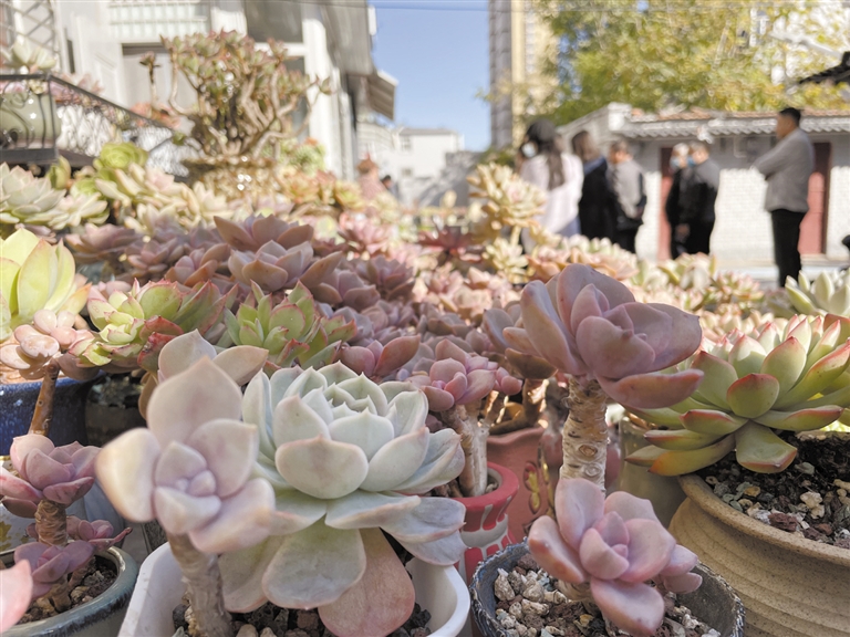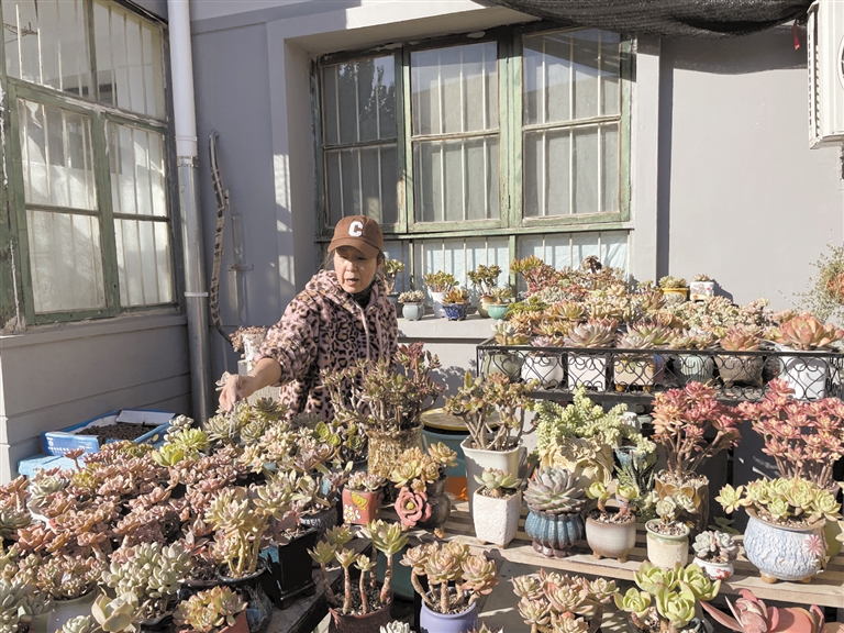 有时候邻居和朋友常来围观,也会聚在这片小天地跳舞、打扑克、下象棋,这让杨丽娜格外自豪,“都夸我做事儿有耐心,养的花好看。我也会跟他们讲一下如何养多肉,希望他们也能喜欢。”杨丽娜说,在她的影响下,很多朋友和邻居也迷上了“肉肉”。