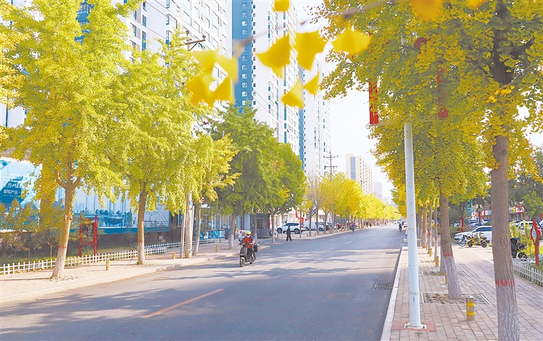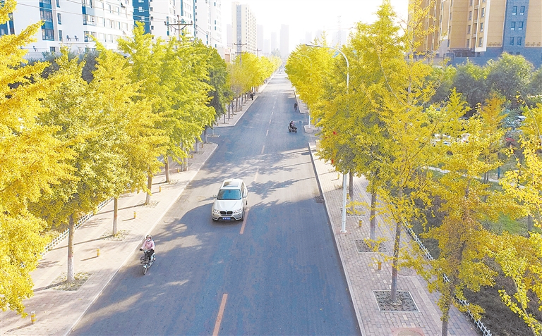 银杏树妆点整条街道。 王栋 摄