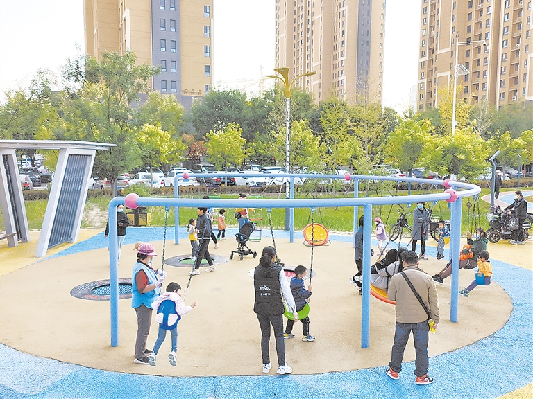 “孩子喜欢来这,有时候小朋友多了还得排队,这儿运动设施不少,主要是离家不远,特别方便。”家住正誉绿谷的李阿姨正带着孙子荡秋千,她告诉记者,“这附近原来也没有什么可逛的地方,现在多好,绿植丰富,风景优美,出门就进公园!”
