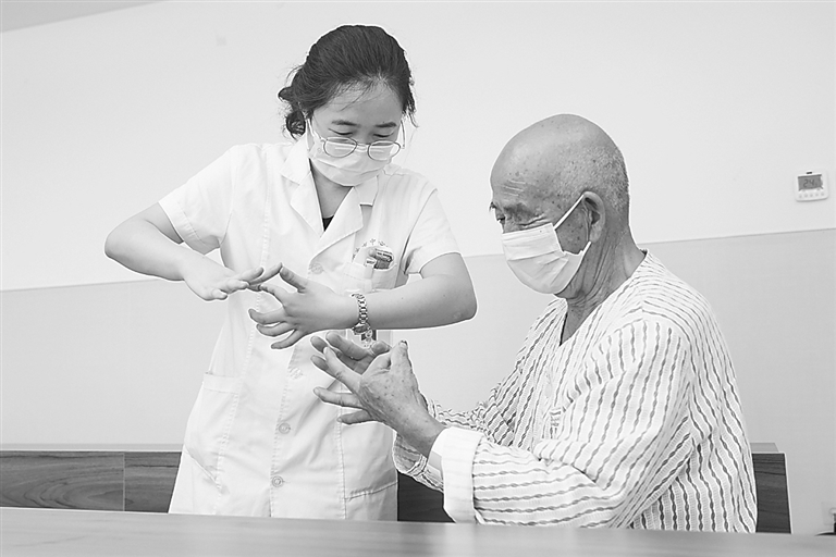 市第一中心医院神经内一科开设记忆障碍(痴呆)门诊一年来,定期开展阿尔茨海默病相关科普知识宣教工作,为促进记忆障碍和阿尔茨海默病患者的早期干预、早期预防、早期治疗起到了积极作用。图片为医护人员正在手把手教患者预防阿尔茨海默病的手指操。