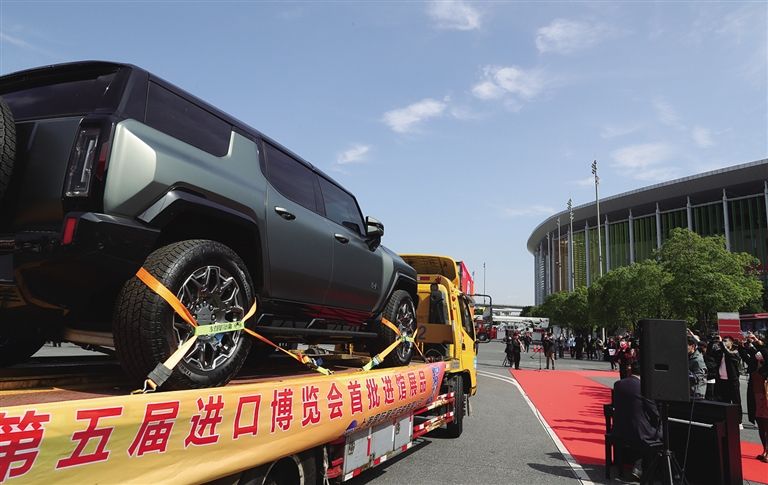 10月24日,装载首批进馆展品的卡车抵达国家会展中心(上海)。 当日,7家进博会参展企业的8件展品运抵国家会展中心(上海),成为第五届进博会首批进馆展品。 新华社记者 方喆 摄