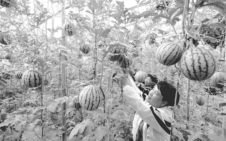 李美丽在整理西瓜秧苗。