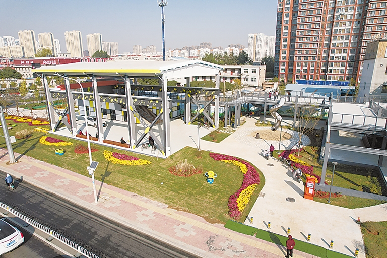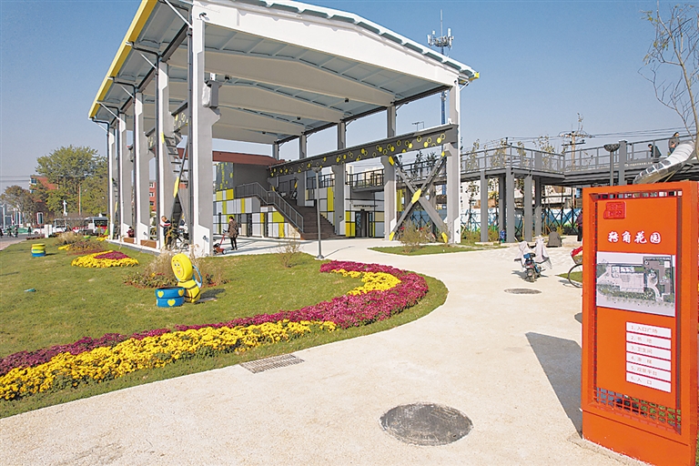 10月25日,在蓝天白云映衬下,位于复兴路与阳光大街交口东北角的转角花园分外美丽。该花园为市城管执法局利用原有建筑打造而成,面积2600平方米,以“城市客厅”为设计理念,设置书吧、观景平台、儿童游憩等服务设施,满足不同人群使用需求,是一处集观光、休闲、阅读、健身等为一体的高品质小微型城市绿色公共空间。 时兴宇 赵博晗 摄