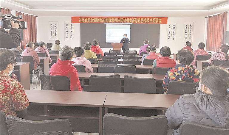 农业专家走进博野县杜各庄村,开展中药材病虫害绿色防控技术培训。 张光伟 摄