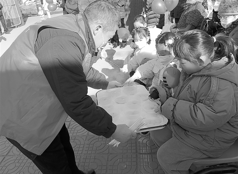 活动现场,社区小朋友们一起品尝甜甜的汤圆。 刘会敏 摄