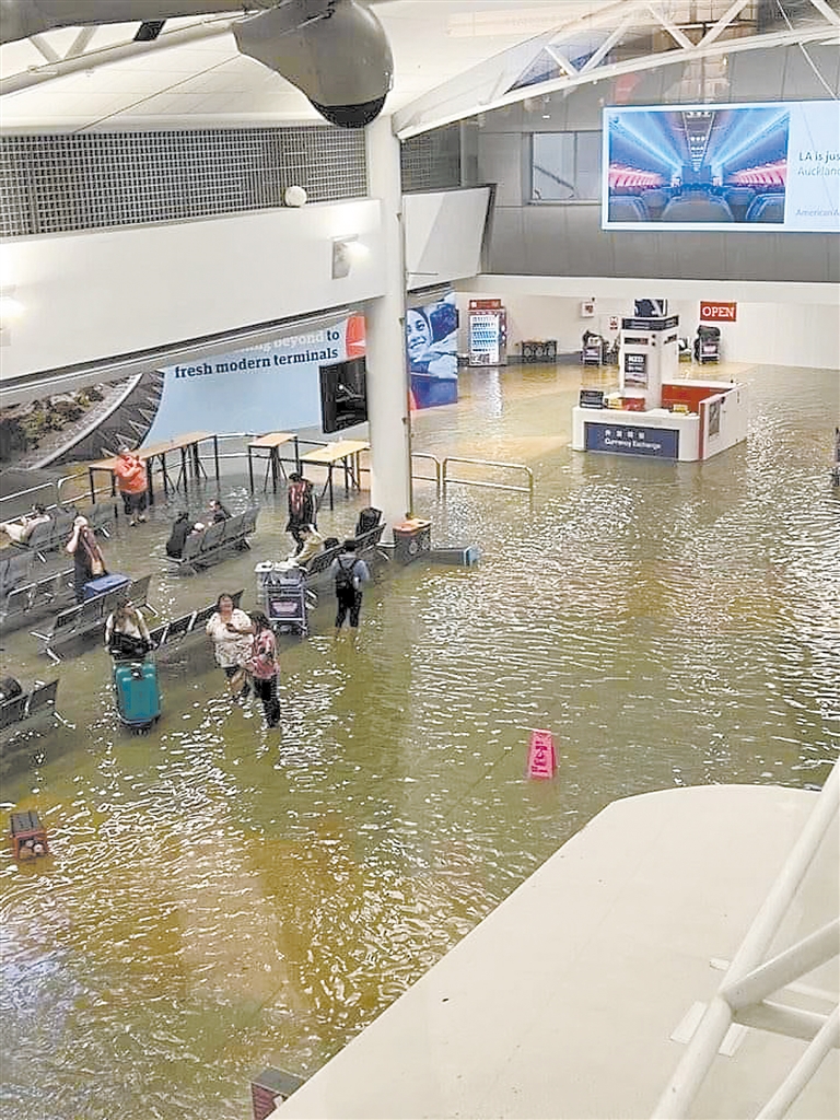 图为1月27日新西兰奥克兰国际机场国际出发航站楼和一大型超市遭洪水侵袭。 新华社发