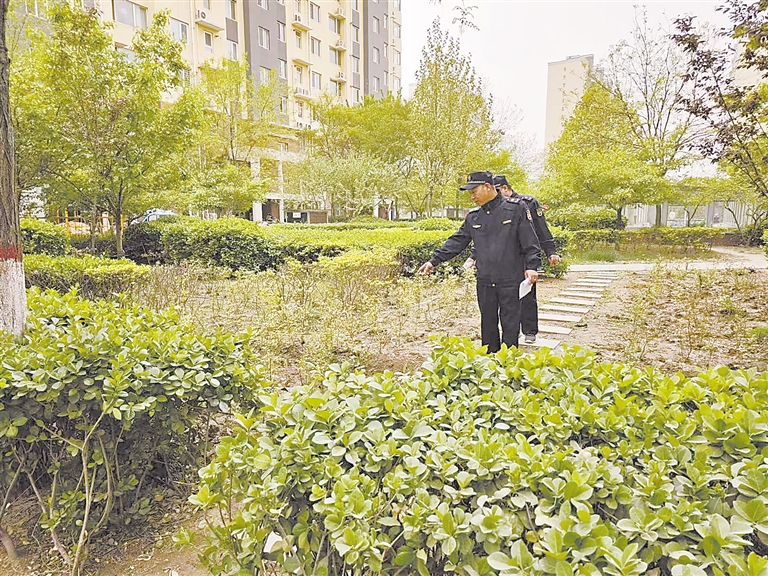 执法队员综合整治小区内及周边环境卫生、绿化、路灯照明、私搭乱建等。