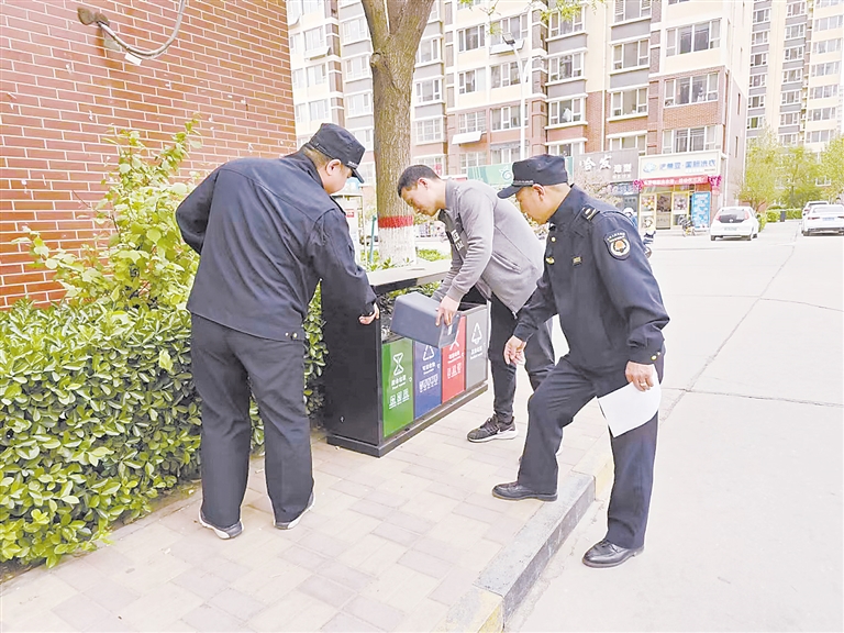 “大姐,您这个厨余垃圾需要投放到绿色的厨余垃圾桶里。”……在治理居民小区环境时,直属三大队出动30余名执法队员,联合住建、社区等相关部门,对茗畅园、阳光盛景、朝阳首府等居民社区,综合整治小区内及周边环境卫生、绿化、路灯照明、私搭乱建等,同时也对文明养犬、垃圾分类等进行宣传和引导。