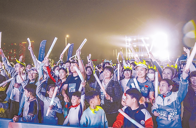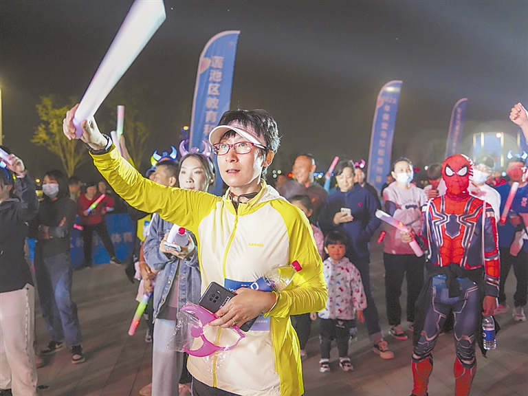 4月14日晚,600余名路跑爱好者齐聚保定东湖湖畔,参加由市体育局、莲池区人民政府共同举办的“魅力新保定·跑向新未来”2023年保定马拉松系列赛暨“荧光潮跑·点亮冠军塔”主题健身活动。夜幕下,冠军塔灯光璀璨,美轮美奂。荧光跑者在美丽的东湖湖畔激情开跑,一路上享受运动带来的愉悦,充分展示昂扬向前的跑者风采。此次荧光潮跑活动,旨在助力保定首届全马赛事,既拉近了市民与马拉松运动的距离,又大大丰富了广大市民的文化生活。