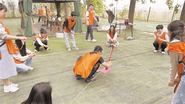 5月19日,河北建设集团联合多家单位开展青年联谊活动,为单身青年员工牵线搭桥。图为联谊会趣味活动。 张晶 摄