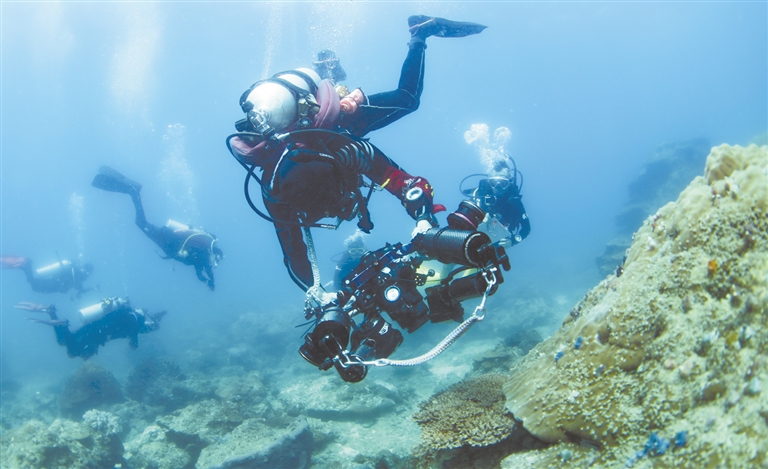 5月28日,参赛选手在比赛中。 当日,2023年中国水下摄影公开赛在海南省三亚市蜈支洲岛旅游区开幕。据悉,这是国内首次举办国家级水下摄影大赛,吸引了来自全国各地近40名水下摄影师参赛。 新华社发