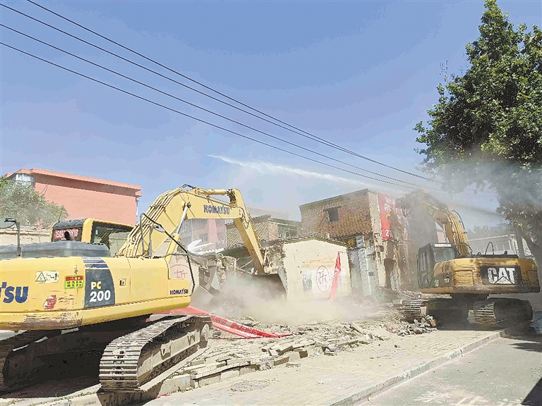 湛蓝晴空下,随着1200平方米的建筑物被拆除,我市一条“断头路”打通在即。此处位于盛兴路,恒祥大街西侧,山水园小区北侧,占地面积约1.7亩,为城苑村城改拆迁遗留问题。按照莲池区委区政府统一部署,五四路办事处联合莲池区执法局、莲池区住建局合力攻坚,启动拆除。同样让路于民的还有隆昌路(阳光大街至瑞祥大街)路段,此处处于莲池区与竞秀区接合部,占地8.26亩,建筑物面积7000余平方米。2005年纳入路网规划,至今已遗留停滞18年。