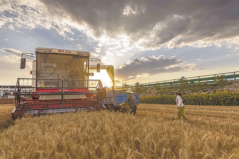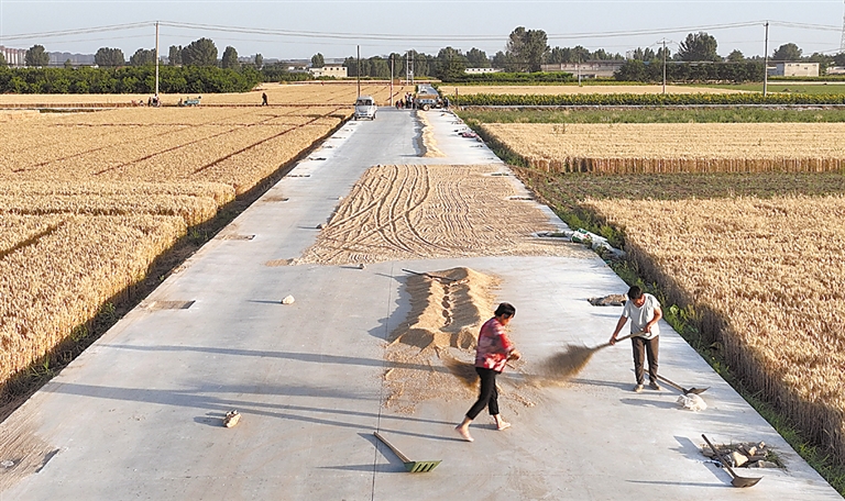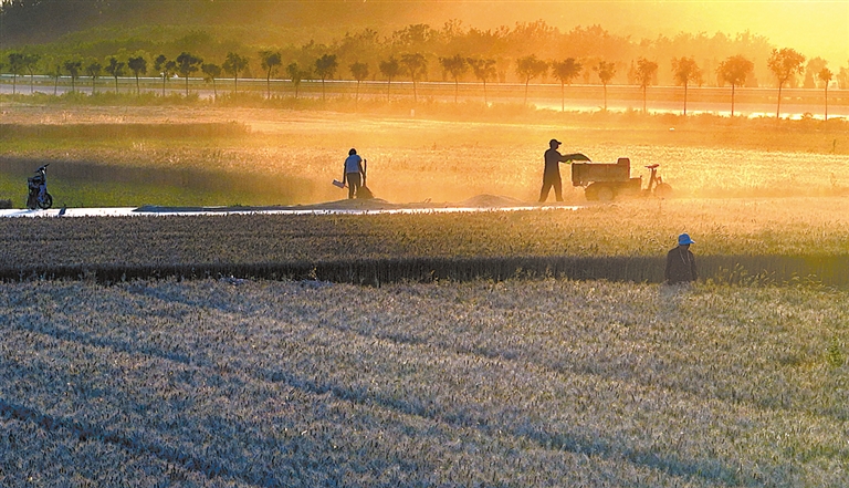 忙碌的麦农言语间带有几分惬意:今年的麦子长得好,产量高于去年,要是给几个好天儿,丰收就是板上钉钉了。