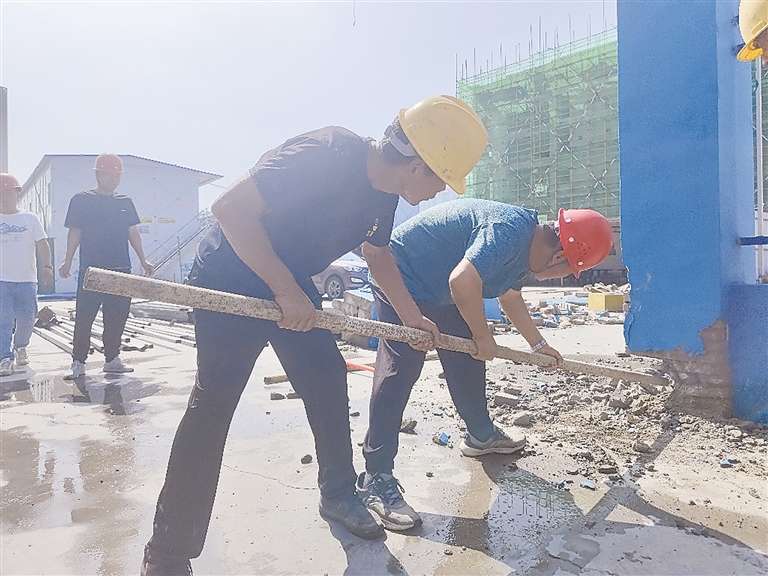 工人们正在拆除的3500平方米工棚,是打通富昌路断头路的关键“堵点”。 郝子帅 摄