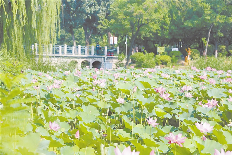竞秀公园精选五处最佳观赏点,游客可在此观赏竞秀湖内栽植多年的荷花群落。 白培培 摄